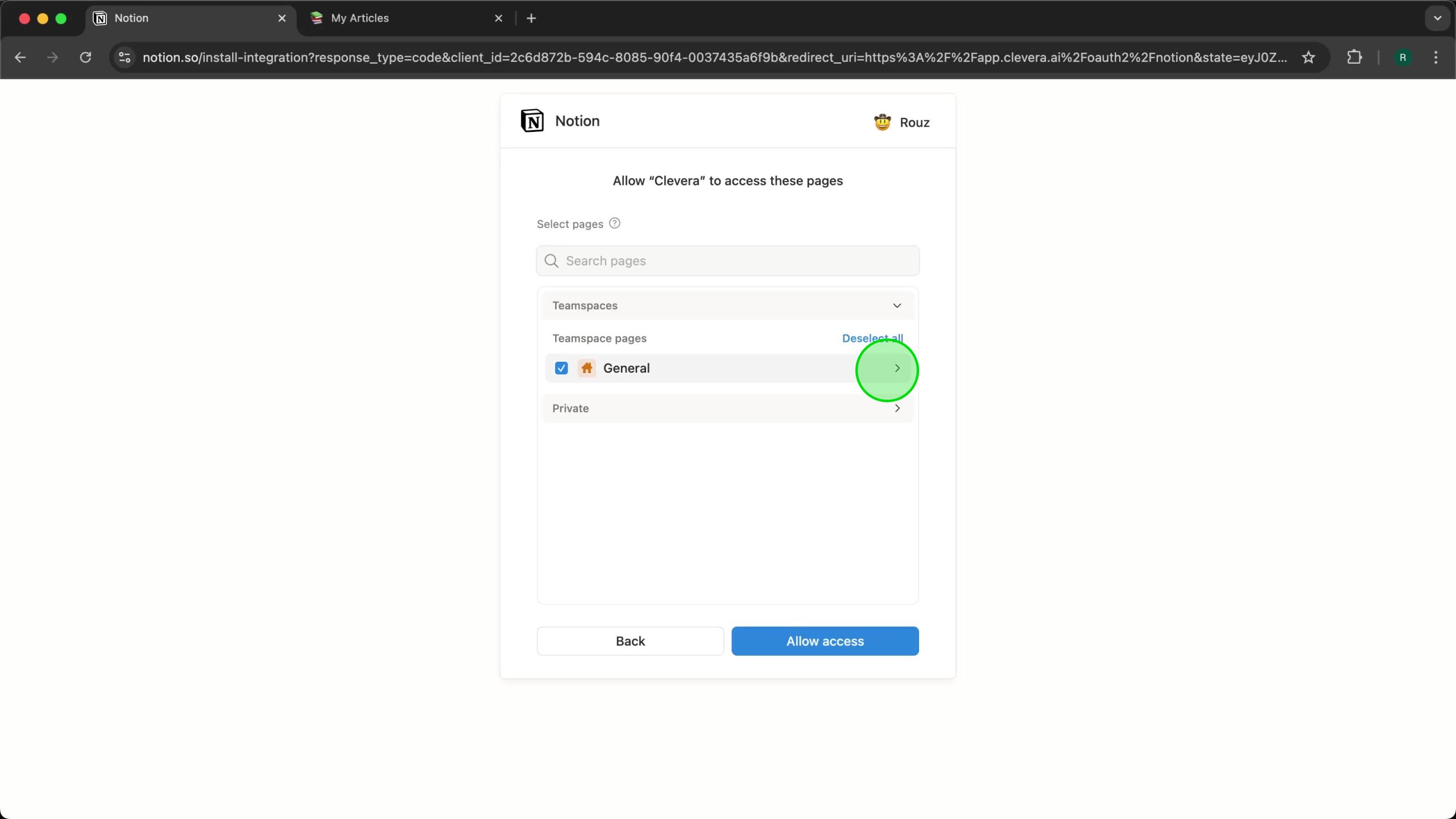 Step 3: Authorizing Clevera in Notion